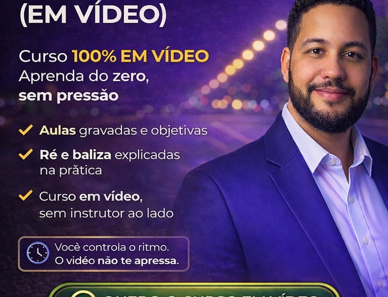 Eu criei o curso Dirija Sem Medo, pensado especialmente pra quem sente medo ou insegurança ao dirigir, principalmente com embreagem, marchas e manobras.